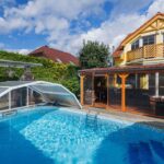 • бассейн с автоматическим дозатором химии и 2× тепловыми насосами для подогрева воды до 35 °C даже зимой;