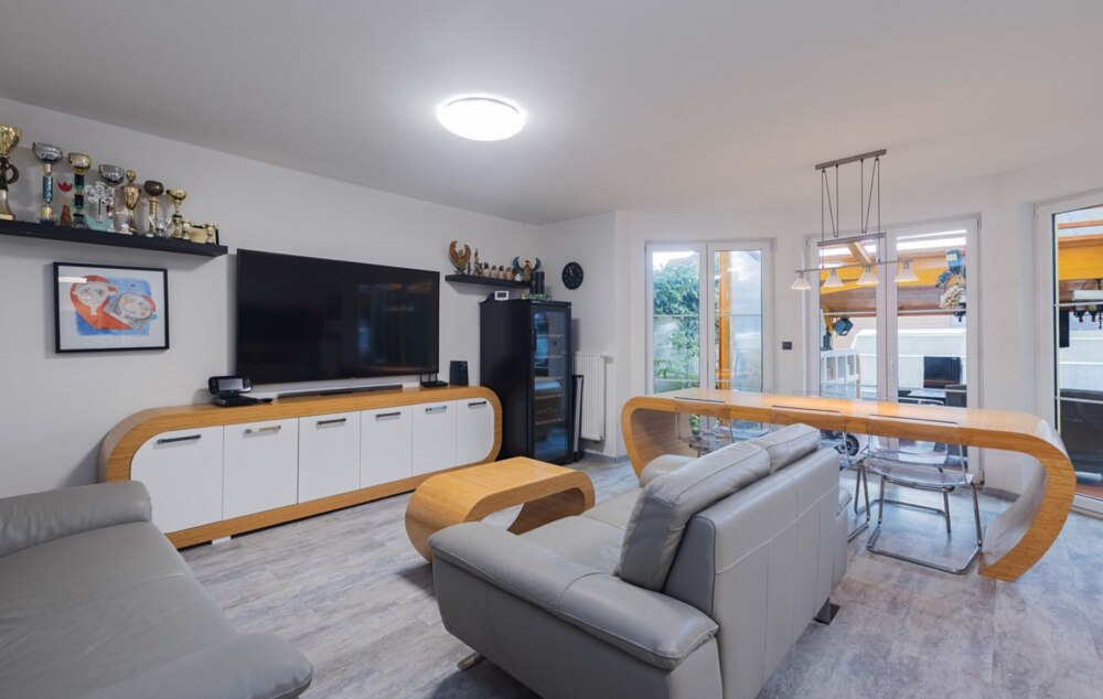 • из гостиной есть выход на открытую отапливаемую террасу, которую можно использовать круглый год;