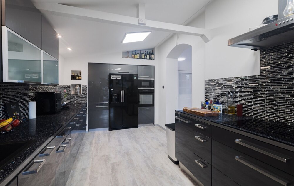 • кухню с полностью современным оборудованием, с доступом как из гостиной, так и с внешней части дома;