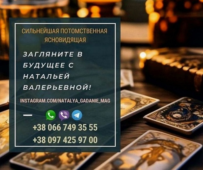 Наталья Валерьевна — специалист по любовной магии, снятию негативных программ и денежным обрядам с более чем 25-летним опытом. Она помогает восстановить отношения, вернуть любимого человека, очистить жизнь от негатива и привлечь финансовое благополучие. Сотни успешных обрядов и довольных клиентов подтверждают ее мастерство.
